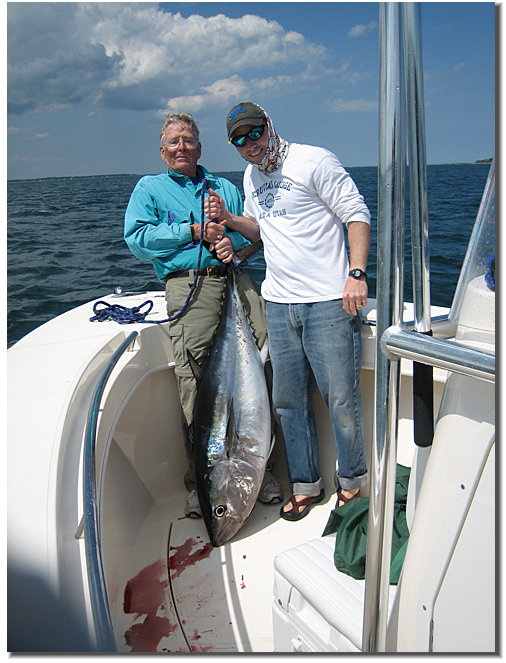 Bert, Capt. John Mendelson (Mendy), and Bert's first tuna