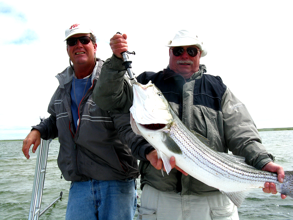 Capt Bill Cooling on Pleasant Bay with Barry Hall's first big fish.