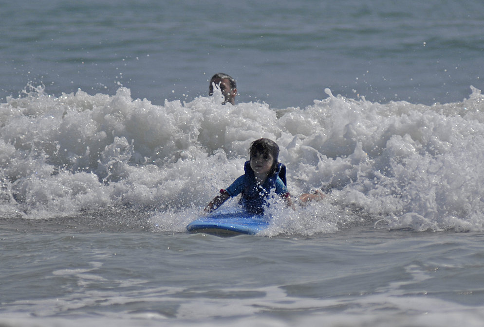 So Eddy launches a water-sogged Ezzie on a wave to go to shore