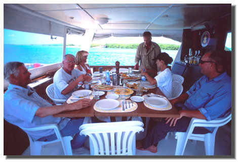 | I figure in the course of the week we ate about ten different kinds of fish cooked about 24 different ways. While we were out fishing with the guides the crew was out diving and spearing our sustenance. | ||||||||||||||||