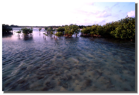 | There was actually very little dry land in the entire 110 miles of keys. No matter the size of the mangrove key from the outside, when you poled in you found flooded flats, often a large opening in the middle. I assume the frequent hurricanes keep them washed out. In some cases, the bonefish had never seen a boat before and clustered around in curiosity. | |||||||||||||||