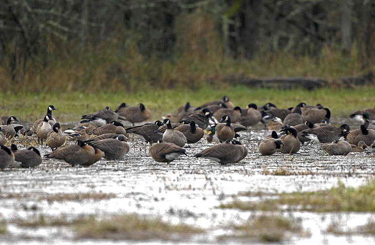 There are at least 3 geese in this picture that, by breast color, may or may not be Duskies. That variability adds to the confusion