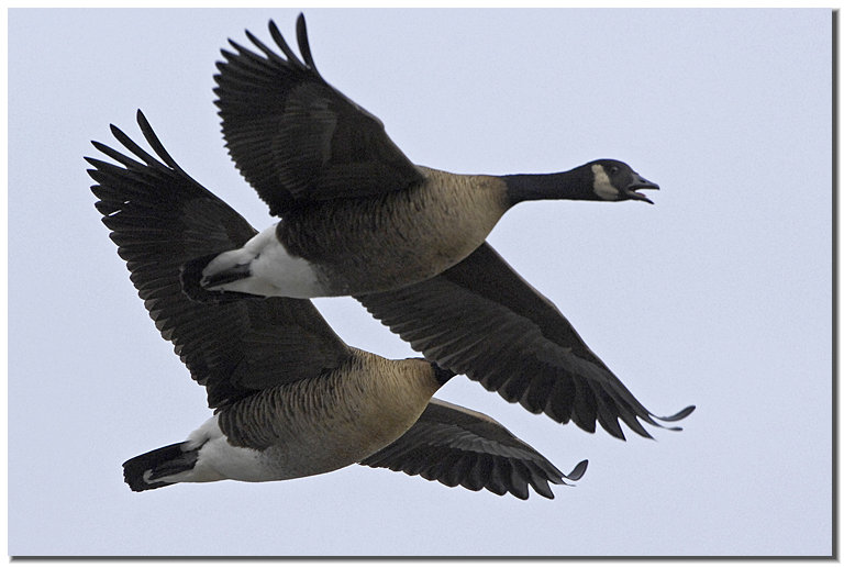 Ah....context is everything. A small Cackler has the exact dark coloration as a Dusky but the size, call, bill length, and typical flock size are quite different. Without any of those clues and nothing to compare size to, I am NOT sure based on this picture that these are not small Cacklers...BUT.........the wings are very broad and the bill looks too long. Dusky. But that is after examining a still picture for 3 minutes. This is a tough game.