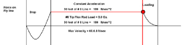 1) the rod starts in a neutral rod straight position (rsp) angled back (variably) and the line is static straight behind the rod.