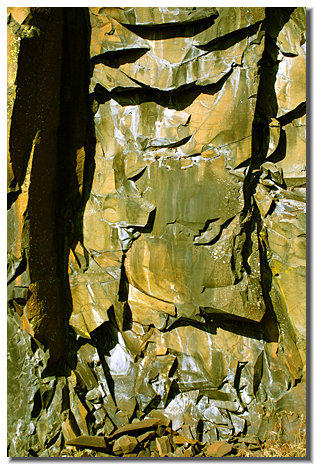 Basalt is simply the most interesting rock on earth. First it flows out and layers like so many pancakes, then in hardening it crystallizes in infinitely long hexagon pillars, then in weathering it chips and cracks to knife-edge forms. Picasso would be envious.