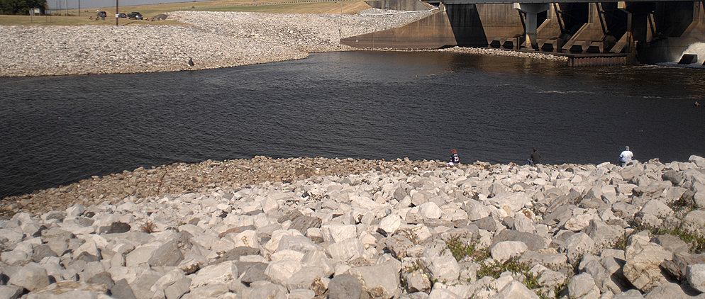 The dam and spillway re-constituting the Pearl River......and local fishermen.