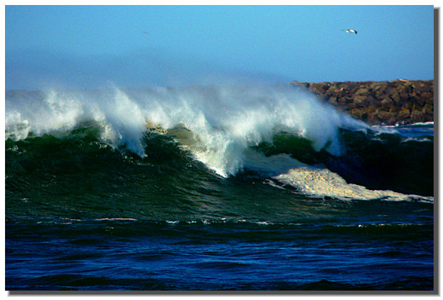 With the incoming ocean swells perpetually running between 6 and 20 feet meeting a rushing outgoing tidal flow, Oregon coastal river mouths are notoriously dangerous. In the calm summer months, the small boat salmon fishermen cluster just outside the jetty on an incoming tide and rush back in before it turns. The Coast Guard rescue boats are designed to roll, turtle, and self right. And regularly DO!