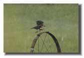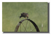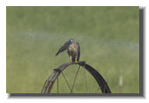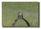 In the Wamic area on the eastern slope of Mt Hood, it gets very hot in the summer, as in the 100's. This summer while driving through the area I noticed a hawk sitting on an irrigation line getting sprayed with each round of the sprinkler, but I did not have my telephoto lens. So the next time I was driving thru the area I had the camera with me and I was looking for this. Unfortunately, the sprinkler was way off the main road and I couldn't get closer.
