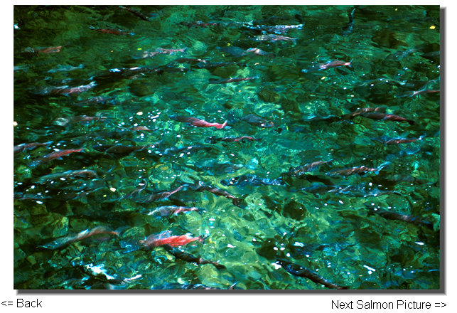 | Most people are not prepared for the incredible abundance of nature unleashed, such as in the salmon runs. One does not have to go to Alaska to see concentrations like this. These pictures were taken just off a major highway in Washington state. | ||||||||||||
