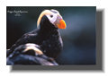 The quirk of the thing was, since the burrows on the top of the island (Discovery Island off the mouth of Discovery Bay, Strait of Juan de Fuca) were MUCh easier to dig, we started there first. We took two chicks that looked right. In raising them, it became apparent we had taken Rhinocerus Auklet chicks instead of Tufted Puffin chicks. Back to the island and some REAL cliff hanging. So, in proving that Tufted Puffins could be kept in captivity, we also secretly proved that Rhinocerus Auklets could also. 2 for 1! Nowadays, both Tufted Puffins and Rhinocerus Auklets are staples in public zoos and aquariums the length of the Pacific Coast. |