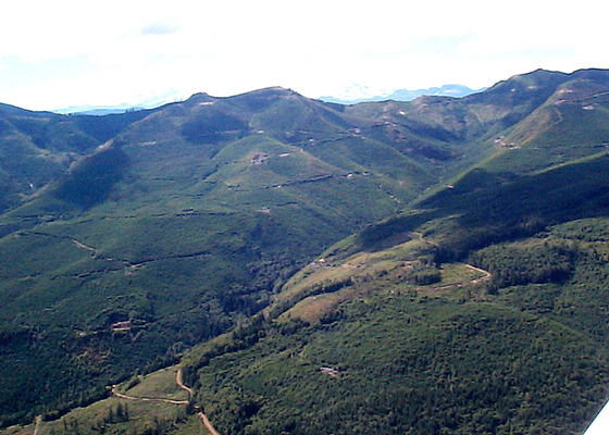 | Right to the ridgeline, logging roads and blanket cut of individual tracts. There appears to be at most only two small tracts of mature trees, if that. | ||||||||||||||