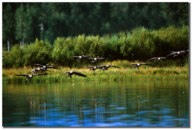 Waterfowl in flight==>