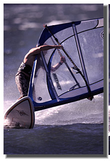 Bob Milbert demonstrates a "duck jibe", completed on next page