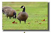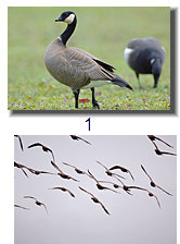 The Cackling Goose group of subspecies are the smallest of the Canada type species, the smallest running 3-4 pounds and distinguished by it's most high pitched "yelp". No "HONK" in this little critter. Once nearly extinct they have proliferated with protection and now in the winter immense flocks cover the grass fields of the southern Willamette valley. Three subspecies, the minima, the Aleutian goose, and the Taverners mix freely. They are the small, smaller, and smallest. Throw into some of the same habitat four subspecies of true Canada geese, the Western, the Vancouver, the Dusky, and the Lesser and you have a truly bewildering problem of accurate identification. The biggest, the Western Canada, and the smallest, the minima Cackler, are the easiest. The minima is just plain CUTE!