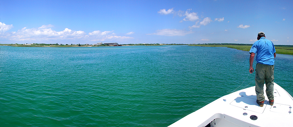 Bill Logan on deck, up Bass Hole marsh with Capt. Joe LeClair