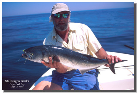 Capt Gil Berke holding up a 20 pound fly caught Blue, which is I believe a state record. It tasted good.