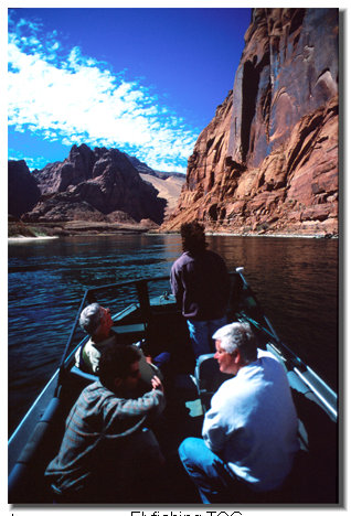 | My son Matt driving my sled. The 13 mile run upstream from Lee's Ferry to the base of the dam takes about 30 minutes at slow planing speed. The trip for the sightseeing alone is well worth it. We fantasized about mounting the video camera on the bow, turning it on, and making the run, slow and easy | |||||||||||