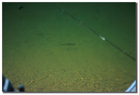 | A 16 inch rainbow at "Frustration Bar". There were easier spots and easier moments, but for most of the fish most of the time it took a small midge or scud presented right into it's mouth. No work ethic here. | ||||||||||||||