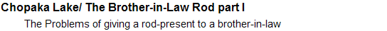 | Chopaka Lake/ The Brother-in-law Rod Part II | ||||||||||||||||||||||||||||||||