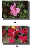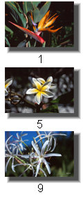 Certainly not the least of the whole experience of spending time in Hawai'i is being surrounded by the flowers. Their beauty and color fill every sweep of our eyes, and it is planned that way. And, we are led to believe, that flowers played a central role in Hawaiian culture, forget the fact that very few, if any of the flowers most commonly identified with Hawaii today are, in fact, not native there. The fragrant and delicate Plumeria, prized for the most expensive, if not short-lived of leis, is the Frangipangi blossom of old english writing from colonial India. But why quibble. Enjoying flowers is the most simple of pleasures, forget the details, the scientific names. Just look, see, and marvel. It can be that simple. The following pictures really make marvelous placemats, making any table setting pop to life. Simplicity. |