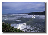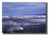But the continuous onshore flow as well as the almost continuous storm tracks makes for a very inhospitable place if you want to be ON the water. In the winter the swell heigth is never below 10 feet and reaches 20 feet weekly, often for days at a time. As the fronts approach and cross the coast the wind regularly hits 50-60 mph sustained gusts and 100mph sweeping up over the headlands. Watching that interplay of fluid force hitting immovable coast is a sport all in itself. They call it storm watching. When the swells are predicted to be over 20 feet, the off-season motel vacancies fill up.