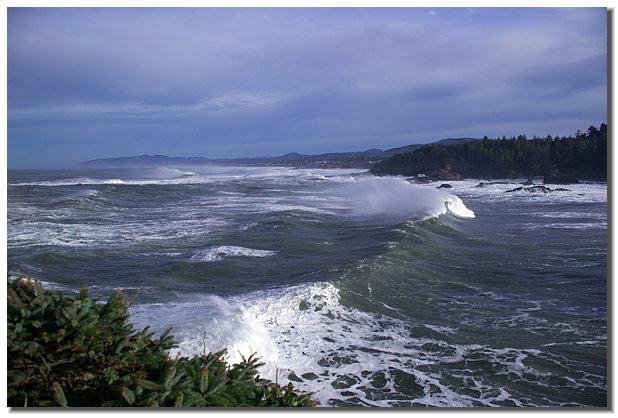 The offshore wind starts cutting off the top of the swells as they rear up to break.