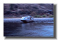 Two pictures need explaining.The blurry sled on the rock bar was the sight that greeted us early the first morning as we started up the river from the guides's lodge. We had heard a boat go by in the darkness 15 minutes before, as is common as there is some competition to get to certain runs first. Just starting our run, with only the slightest twilight I see this sled high and dry, as though stranded by a tide. Mike, the guide, was staring with his jaw aghast. "That just happened, he missed the river in the dark" As hard as it was to imagine, that 24 foot aluminum (not known for sliding well on granite) sled ran onto the boulder bar at 30 mph or better, skidded around and stopped facing 180 degrees from how it started. The driver/guide and his helper were not hurt. We stopped and 18 of us shoved the boat back into the water, where it promptly sank in 2 feet of water. We went on our way as other boats gathered to help. Amazingly, the next day the boat was pounded out, welded, and back in service There was so little light that the exposure was hand held at 1 1/2 seconds exposure.
