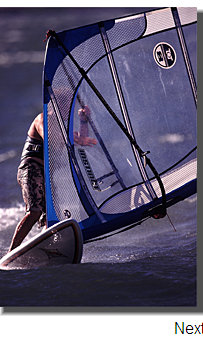 Bob Milbert demonstrates a "duck jibe", completed on next page